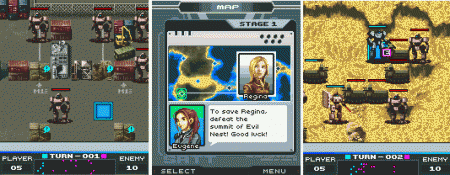 All’impostazione strategica si aggiungone poi una serie di elementi puramente RPG, come i punti-esperienza ed i potenziamenti da effettuare sui vari mech tra uno scenario e l’altro (ce ne sono ben 8); il tutto è realizzato con la leggerezza e la semplicità che necessariamente devono caratterizzare un’esperienza mobile, senza però ridurre troppo la profondità del titolo. Sia chiaro, Front Mission 3 è su un altro pianeta dal punto di vista dell’accuratezza e della complessità, ma epr un gioco java con HoM siamo davvero su livelli di eccellenza.