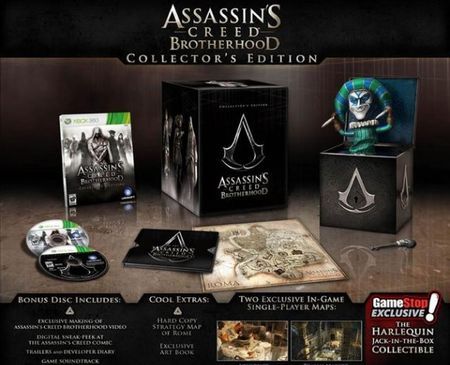 Inoltre nella confezione di questa edizione speciale di Assassin’s Creed Brotherhood, sia per quanto riguarda la versione per PlayStation 3 che relativamente a quella per Xbox 360 (nulla è stato detto al momento su un’edizione collector’s per piattaforma computer), sarà presente anche una simpatica scatola con un pagliaccio che salta fuori all’apertura grazie ad una molla.