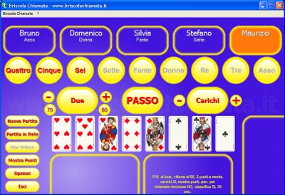 … e noi lo portiamo a voi. Briscola è un gioco che ha il sapore dei ricordi di guerra, dei nonni che raccontano le favole e che ci insegnano a tenere in mano le carte, dei biscotti caldi, dei tavoli in legno rovinati dal tempo e dal profumo di caffè dei bar. Perfino il grande Manzoni parla di queste gioco nei Promessi Sposi. Per noi, giovani generazioni, rappresenta un bellissimo passatempo da trascorrere con gli amici, magari in pulman durante un lungo viaggio o per passare una nebbiosa e gelida notte. Seppure ci siano numerose varianti, da due a sei giocatori, la più bella rimane quella a cinque. Questa modalità infatti viene riproposta da un gruppo di persone che ci regala questo gioco direttamente sui nostri PC.