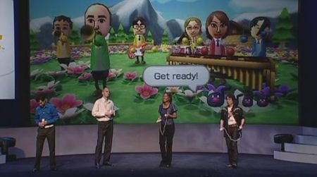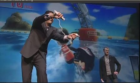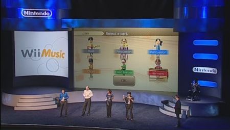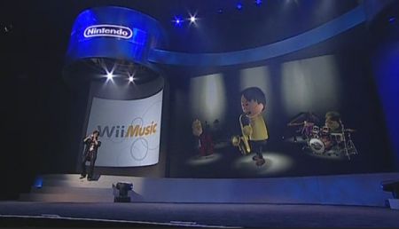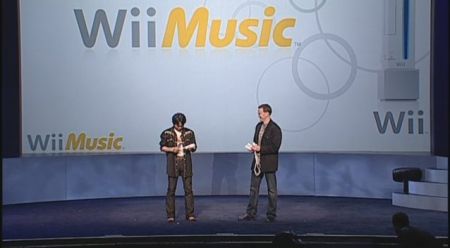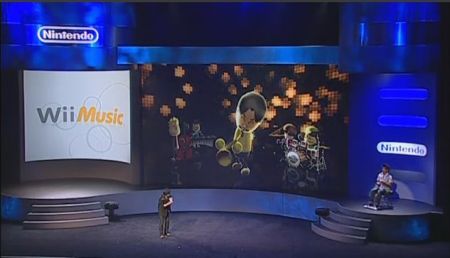 18.53 – E’ arrivato il momento Wii Music. Un musicista suona una batteria virtuale utilizzando Wii Remote e Nunchuck come bacchette, e la Balance Board come pedali; contemporaneamente Shigeru Miyamoto simula uno strumento a fiato tenendo il Wii Remote tipo flauto dolce. Wii Music rientra nel progetto iniziale di reinterpretazione secondo la “filosofia” Wii: dopo Sport, Fit, Play ecco il Music. Gli strumenti utilizzabili saranno 15, tra i quali piano, sax, violino, batteria, chitarra. Il sistema appare come un riadattamento e semplificazione del concetto di Rock Band e Guitar Hero, basato maggiormente sulla postura e i movimenti, con meno attenzione risalto alla precisione e al tempismo.
