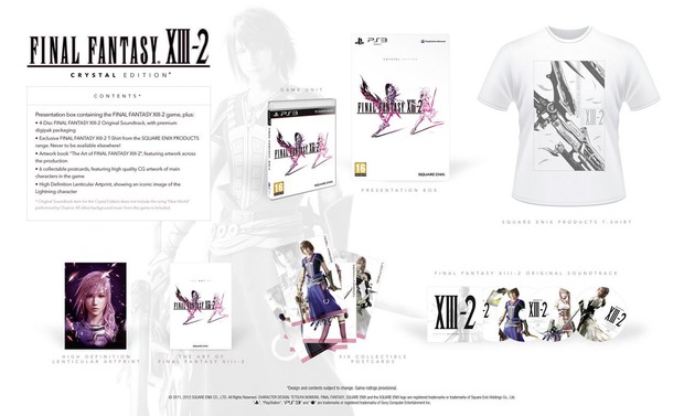 La Limited e la Crystal Edition di Final Fantasy XIII-2 devono essere nostre! Square Enix, infatti, pur non avendo comunicato ancora il prezzo, ha preparato due confezioni davvero niente male; versioni da collezione che vanno ad aggiungersi ai già annunciati bonus pre-order (uno steelbook case esclusivo, un pacchetto di contenuti scaricabili, il racconto Final Fantasy XIII – Episode I e tre bellissime litografie). Maggiori dettagli saranno svelati in seguito, questo è vero, ma ora siamo comunque in grado di dirvi l’essenziale. Beccatevi queste sorprese, allora!