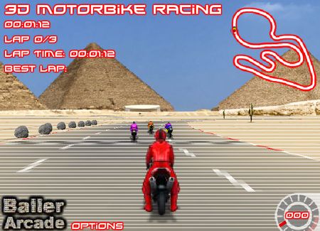 3D Motorbike Racing è sicuramente uno dei migliori giochi flash gratis online. Si tratta di un videogioco in rete estremamente interessante, anche se ovviamente non presenta delle caratteristiche molto avanzate per quanto riguarda la grafica. Il prodotto videoludico ci permette di iniziare una gara di corse con la moto per tentare di arrivare in prima posizione al traguardo. Per far correre la nostra moto basta premere le frecce direzionali.