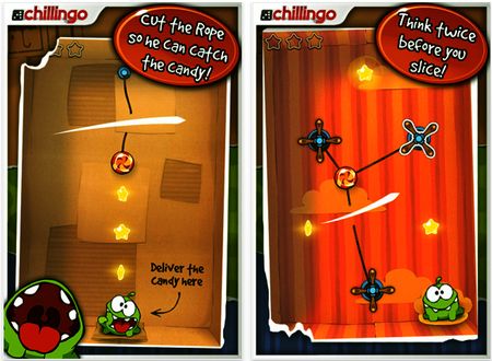 Si tratta di un gioco per iPhone molto interessante che al momento si trova al primo posto nella classifica dei giochi più venduti per i dispositivi mobili di Apple. E’ un giochino semplice e molto originale, che sicuramente darà del filo da torcere ad altri prodotti entusiasmanti con meccanismi di gioco simili, come Angry Birds. Bisogna tagliare delle corde nel giusto modo per far arrivare una pallina colorata nella bocca di una simpatica rana.