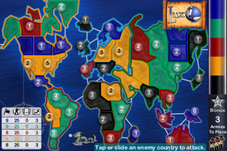Tra le varianti non ufficiali troviamo anche Lux Deluxe e la sua controparte DLX per iPhone. Un’IA particolarmente avanzata oltre alla possibilità di avere differenti territori, ben 75, da conquistare permette a questo gioco di essere riuscito a pieno titolo a far rivivere questa esperienza. Pensate che è possibile addirittura giocare in 6 contemporaneamente con un solo dispositivo. 5,99 € per averlo completo o da provare gratuitamente nella sua versione Lux Touch. Non una ragione per non considerare l’acquisto e come dice il sottotitolo del gioco “perchè conquistare il mondo è divertente”.