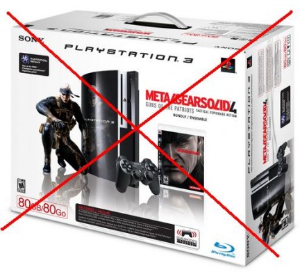 Infatti l’edizione bundle di MGS4 americana ospita al suo interno una console di 80 giga e un DualShock 3, a differenza della versione europea che contiene una console da 40 giga e senza alcun controller.