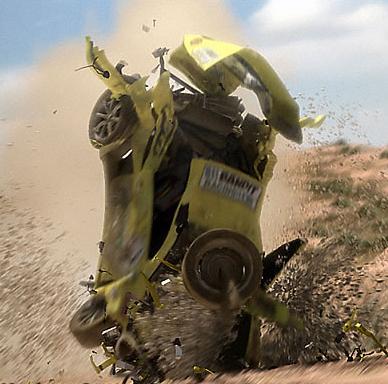 Tutto perfetto, quindi? Sotto il profilo tecnico sì, con un ulteriore nota di merito per gli effetti sonori, corposi e di una varietà impressionante, e per la colonna sonora, che presenta un’ampia selezione di brani rock su licenza, più che adeguati allo spirito del gioco. Sotto il profilo del gameplay arrivano però, seppure in dosi minime, le dolenti note. Non ce ne vogliano i programmatori, ma il modello di guida non spicca per realismo sotto il profilo della fisica dei veicoli. Siamo onesti, nessuno avrebbe preteso (e nemmeno desiderato) il realismo ossessivo di titoli come Baja, ma anche vedere veicoli che “volano” come fossero fatti di aria non è esattamente il massimo della vita. Come non lo è vedere un monster truck – a proposito, sono la novità del gioco in quanto a veicoli – che si esibisce in una serie di “capriole” dopo un contatto nemmeno troppo violento, quando il track design sembra avere come obiettivo primario quello di costrinegere il giocatore al contatto con svariati elementi dello scenario.