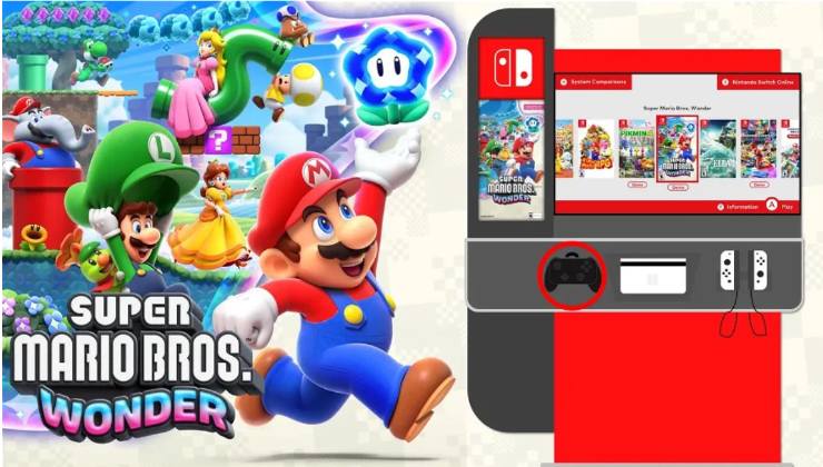 Tuttavia la recente pubblicizzazione dell’imminente Super Mario Bros. Wonder ha fornito all’utenza un possibile spoiler sulla nuova console. Tra i dispositivi indicati per giocare con il titolo, infatti, appare un controller che per forma e dimensioni è completamente differente dal pad pro che è attualmente in commercio. Sarà quello il pad base della prossima console?