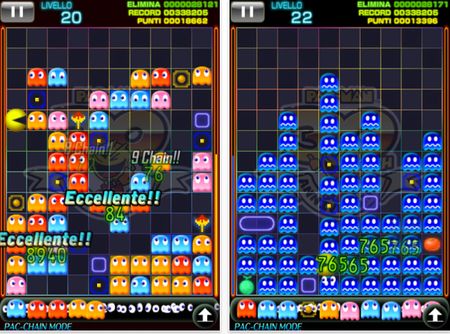 Le modalità di gioco che abbiamo a disposizione sono due. L’opzione Pac-Chain consente di giocare fino a quando i fantasmi raggiungono le parte superiore della finestra di gioco, in una sfida che risulta praticamente infinita se sappiamo gestire le nostre azioni con molta abilità.