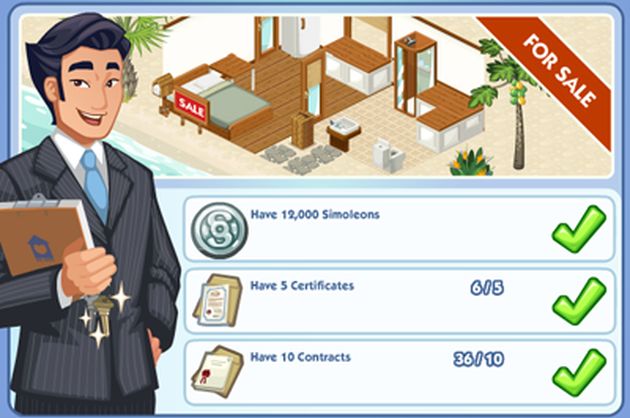 C’è anche la possibilità di andare direttamente in vacanza nella casa al mare, senza aspettare per un certo periodo. In questo caso bisogna comunque spendere 35 Sim Cash. La successiva fase per ottenere la casa al mare comporta il fatto di ottenere cinque certificati e dieci contratti dai nostri amici: servono 12.000 Simoleon.
