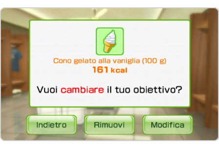 Per rendere ancora più semplice il sistema, la Nintendo ha predisposto degli obiettivi riassunti da un’icona che riproduce una determinata pietanza. Per ognuna di esse viene evidenziato un quantitativo di calorie da bruciare.