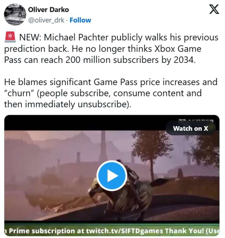 In un recente post, l’analista ha dichiarato di non essere più convinto che il Game Pass possa crescere così tanto, tuttavia non rinnega la bontà della sua previsione, sostenendo che a tarpare le ali a Microsoft sarebbe stato l’aumento dei prezzi e il fenomeno del “Churn”, l’abitudine dei giocatori ad abbonarsi solo quando esce il gioco che gli interessa invece di mantenere attivo l’abbonamento per tutto l’anno.